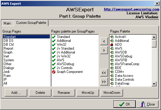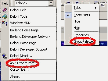 Этот эксперт появится в меню: Help-> AWSExpert Part1 и в всплывающем меню палитры компонентов и в GroupPalette.-> PopupMenu.